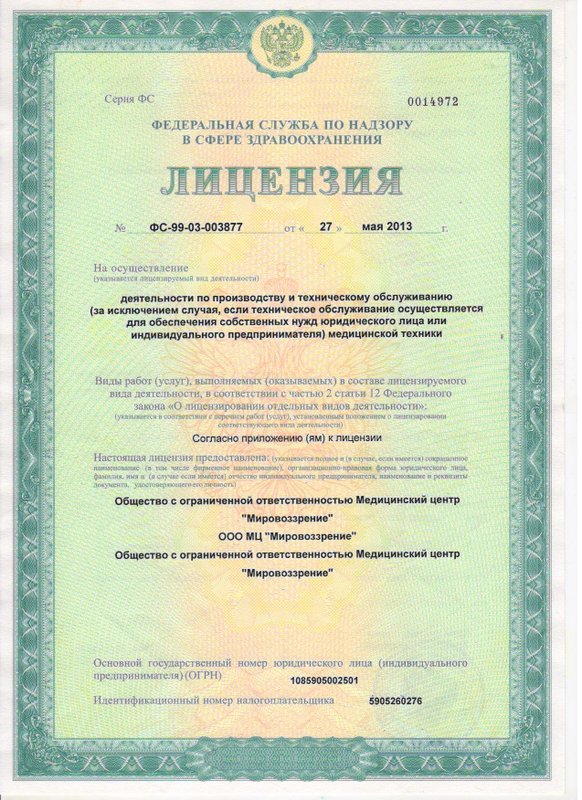 Медицинский центр и салон детской, взрослой оптики Мировоззрение - это многопрофильное медицинское учреждение, предлагающее индивидуальный комплекс услуг для каждого клиента. В работе клиники все построено с учетом комфортного пребывания посетителей. Новейшее оборудование центра помогает провести диагностику организма пациента для составления плана лечения и профилактики. В клинике функционируют отделения общей терапии, кардиологии, ревматологии, аллергологии, нефрологии, неврологии, эндокринологии, андрологии, гинекологии, онкологии, офтальмологии, педиатрии. Наши специалисты имеют профильное медицинское образование и внимательно отнесутся к каждой вашей просьбе. Доверяя свое здоровье нам, вы можете не сомневаться в положительном результате.